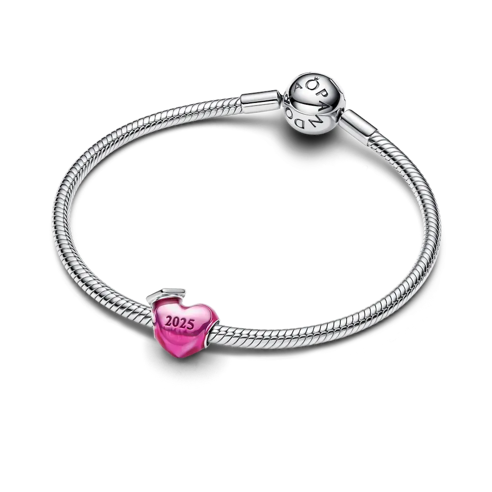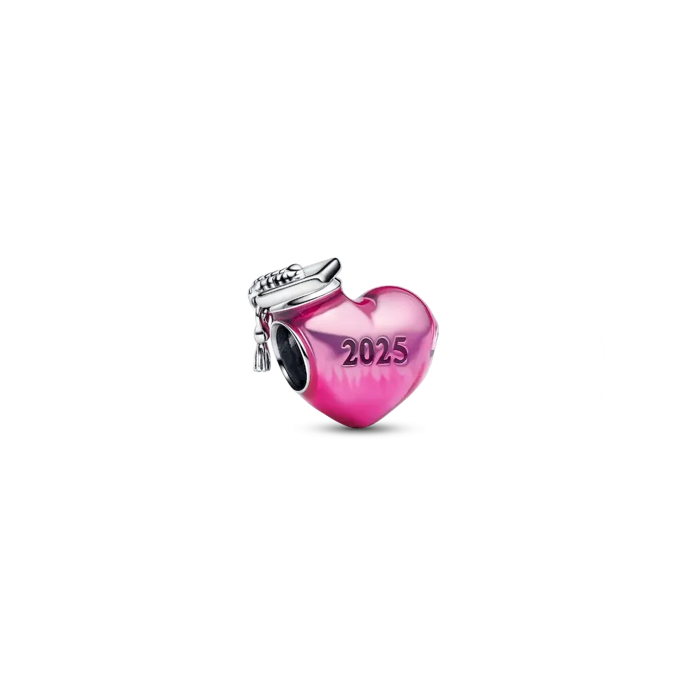 Celebrate graduation in style with the 2025 Graduation Charm Bracelet. Featuring a studded snake chain and heart clasp, paired with a colorful 2025 Graduation Heart Charm—complete with a playful tassel detail.