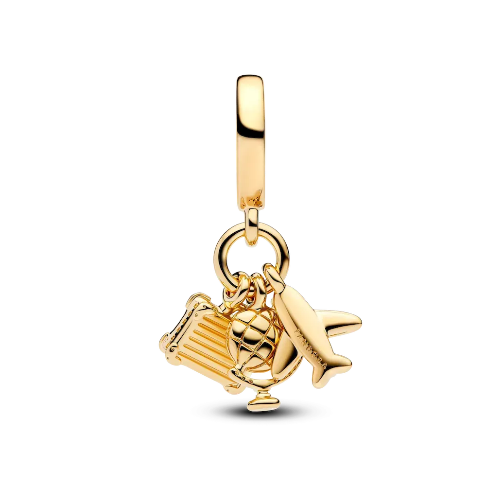 Airplane, Globe & Suitcase Triple Dangle Charm