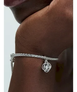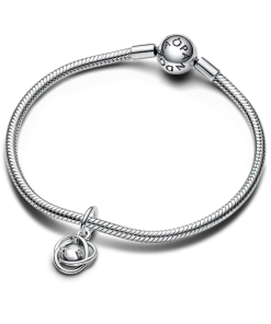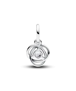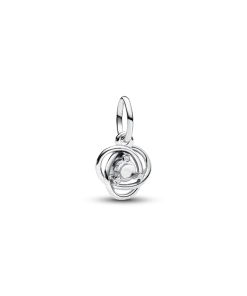 Introducing a new addition to the Eternity Circle family with our Stones of the Month dangle charms. Inspired by unconditional love and power, this intricate knot design features openwork infinity braiding around April’s clear man-made cubic zirconia at the center. Surrounded by three additional small cubic zirconia stones on the front and a cut-out heart shape on the back for maximum sparkle. This dazzling dangle charm comes on a matching sterling silver Pandora Moments Snake Chain Slider Bracelet. Capture the symbolism of an April birthday, milestone or anniversary with this shimmering set. Unconditionally. Infinitely. Be love.