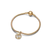 Let the stars guide your look with the Pandora Aquarius Zodiac Dangle Charm Bracelet Set. The dangle is crafted from our 14k gold-plated unique metal blend, has a circular outer frame and features clear sparkling cubic zirconia as well as the shape of the Aquarius zodiac sign. The back side of the frame is engraved with