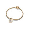 Let the stars guide your look with the Pandora Aries Zodiac Dangle Charm Bracelet Set. This dangle charm is crafted from our 14k gold-plated unique metal blend, has a circular outer frame and features clear sparkling cubic zirconia as well as the shape of the Aries zodiac sign. The back side of the frame is engraved with