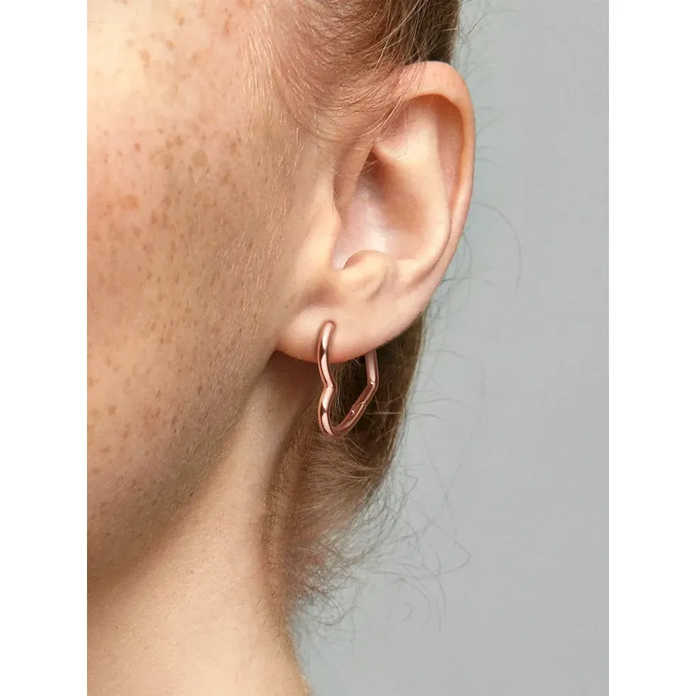 Perfect imperfections are the inspiration behind this cool, minimalist pair of Asymmetrical Heart Hoop Earrings in 14k rose gold plating. Designed to express the non-uniformity of true love, these heart-shaped earrings convey a bold modern expression that is a little more special than traditional hoop earrings. Sure to be a staple in any wardrobe, they can be worn alone or styled with your favourite dangles.