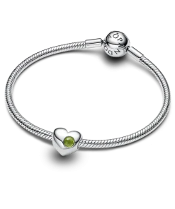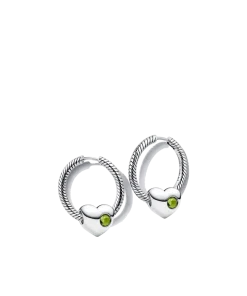 This set includes sterling silver hoop earrings featuring our signature snake chain pattern and an engravable heart charm with a radiant green man-made crystal for August. Add a heartfelt message to make it truly yours.