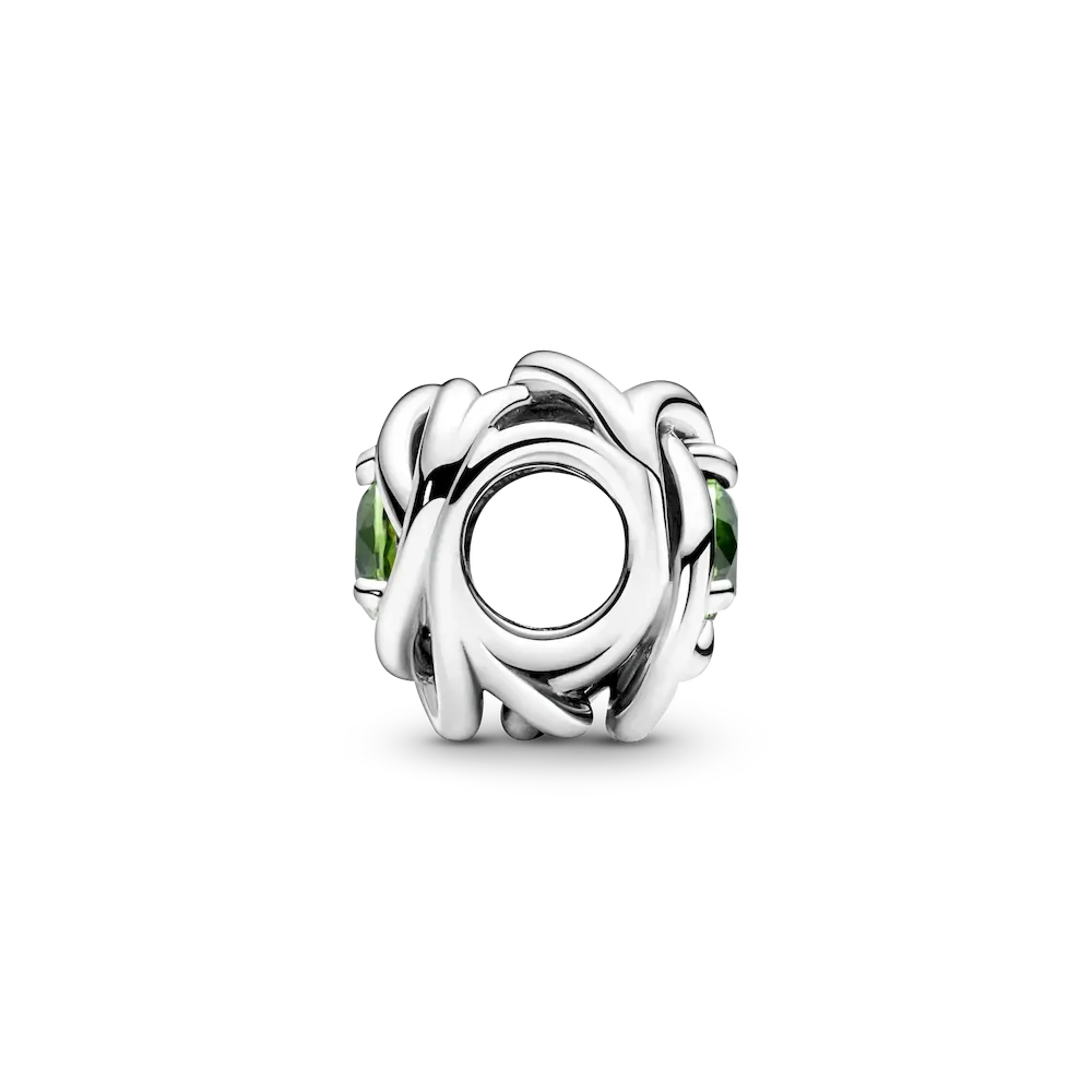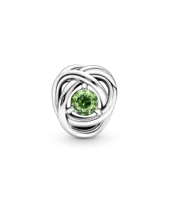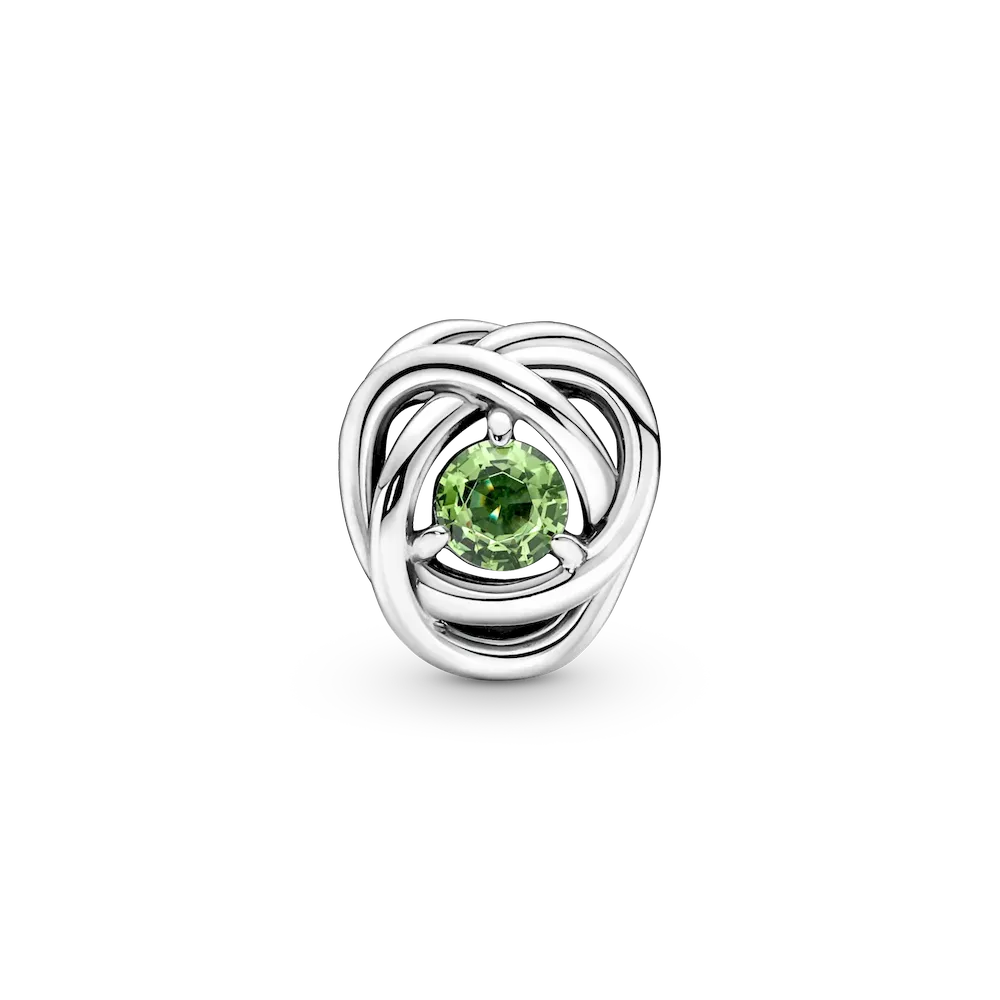 Add a pop of color to your bracelets and pendants with this Spring Green Eternity Circle Charm. This special piece is made in the shape of an infinity braid and is set with a vibrant green crystal at its center. Symbolizing eternity, add this bright charm to your styling to give your everyday jewelry a special update.
