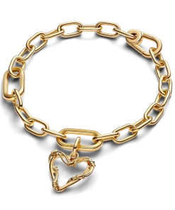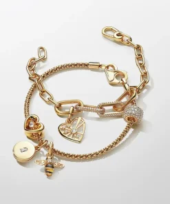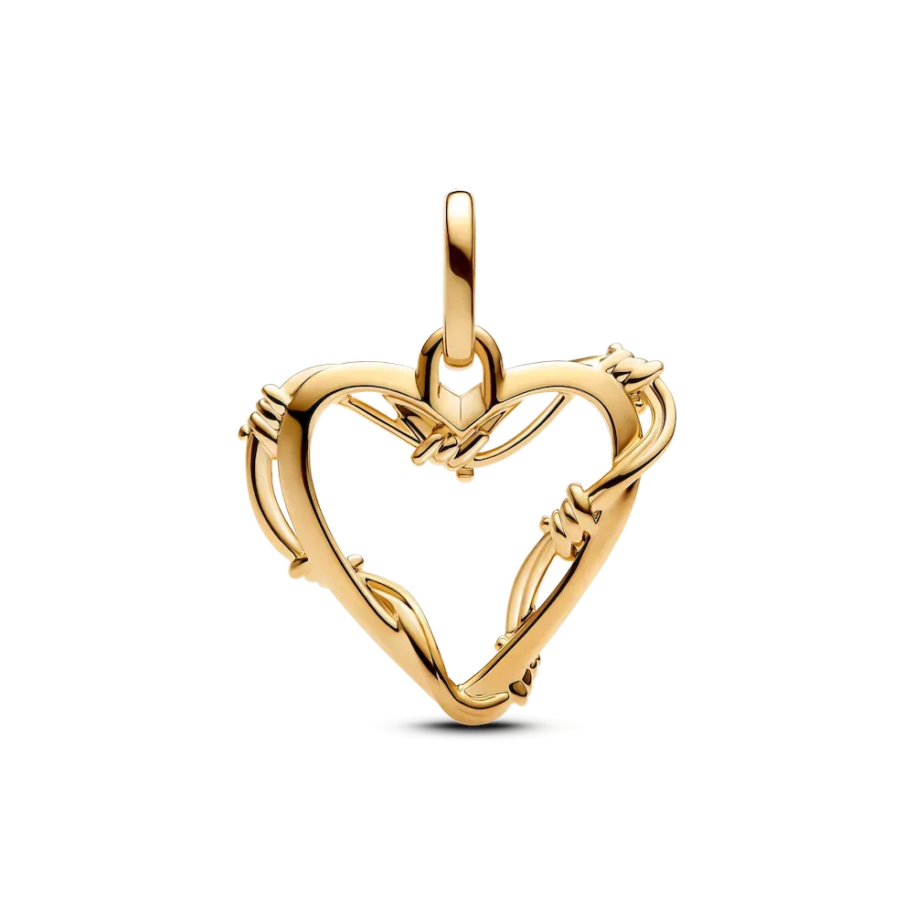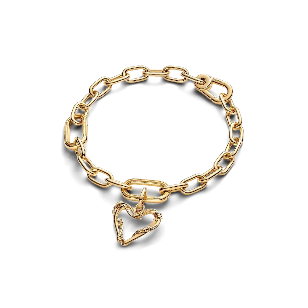 The Barbed Wire Heart Bracelet Set is a powerful symbol of strength and love. Begin with the Pandora ME Small-Link Chain Bracelet, crafted from 14k gold plating. This customizable bracelet features openable links, allowing you to adjust the length and create a piece that speaks to your unique story. Pair it with the Wire Heart Dangle Charm, where barbed wire forms a striking heart, hand-finished in 14k gold plating. A reminder that love is both tender and strong, wear it as a tribute to the love you give, the love you protect, and the love you carry within.