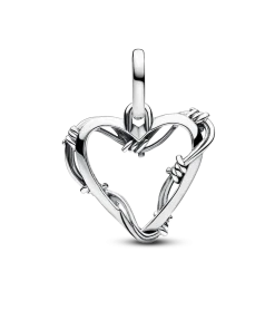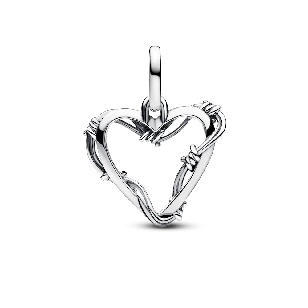 You are stronger than you know. Wear our intricately detailed Wire Heart Medallion as a reminder of how tough and resilient you truly are. Hand-finished in sterling silver, barbed wire swirls around the outline of an open heart and dangles from the middle of a matching Pandora ME link chain bracelet. Express every side of you. Be love.