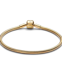 Style more of the charms you love, with our shake chain bracelet with a barrel clasp in 14k gold plating. A long-standing part of Pandora heritage, the barrel clasp was one of our first ever snake chain bracelet designs. Here, it gets a modern update, reimagined with sleeker details. Celebrate Pandora’s history with this iconic piece and let the staple live on as a part of your collection.