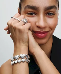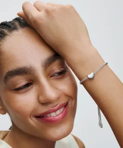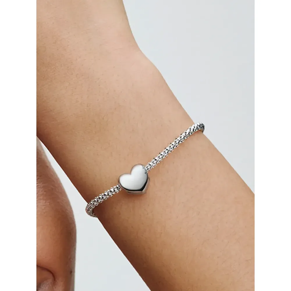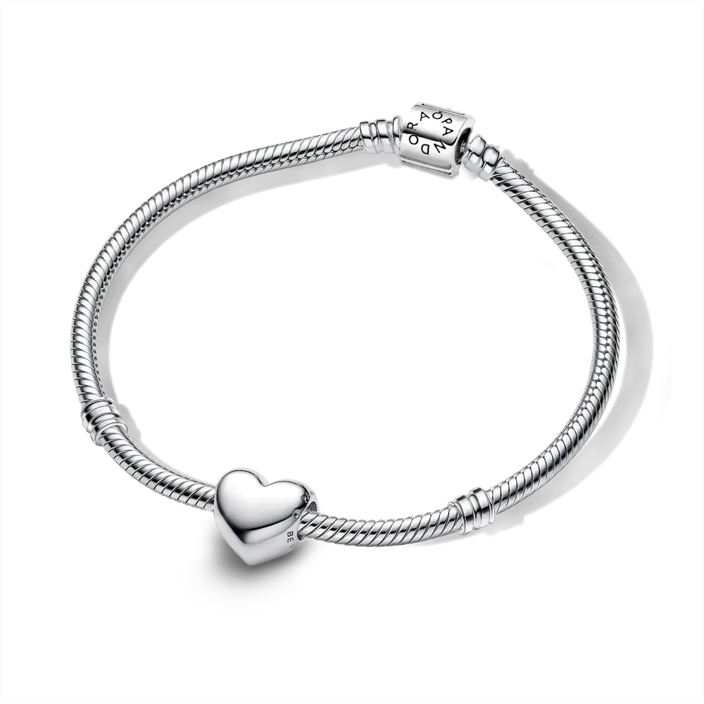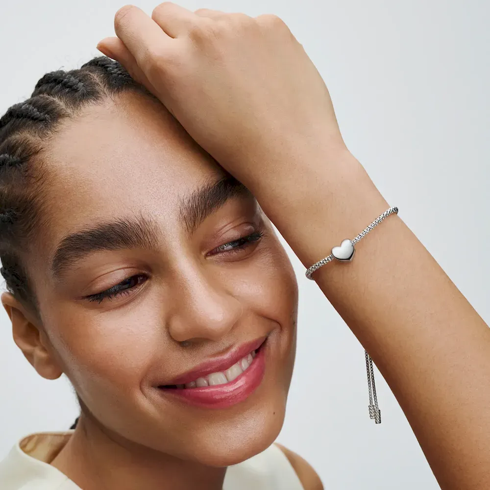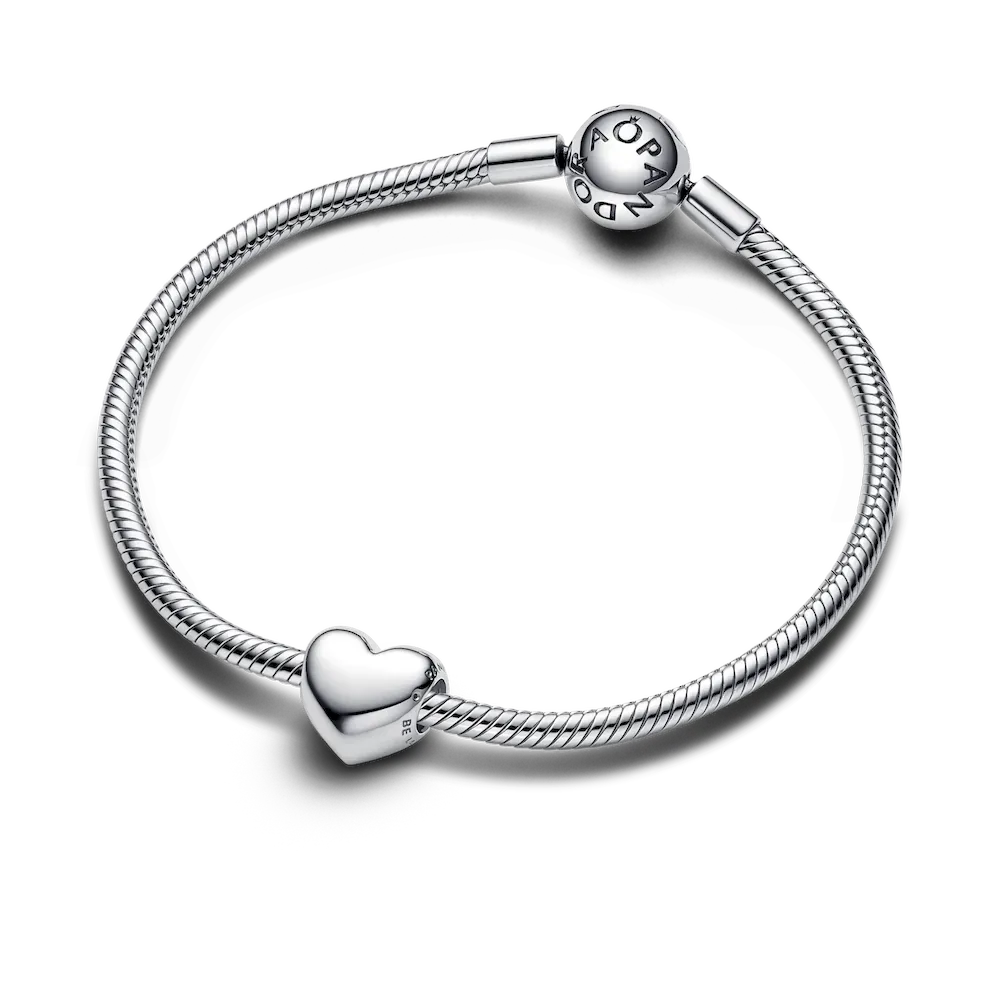 Feel it. Engrave it. Be love. The new heart charm is the perfect canvas to express your love for the people and the things that matter most. Crafted in sterling silver, our first ever non-flip charm design features “BE LOVE” engraved on one side and comes styled on a sleek, snake chain barrel clasp bracelet. This iconic set captures your most meaningful moments forever– just add a message written from the heart.