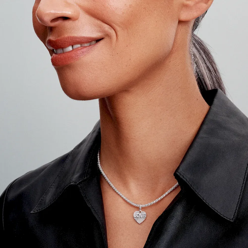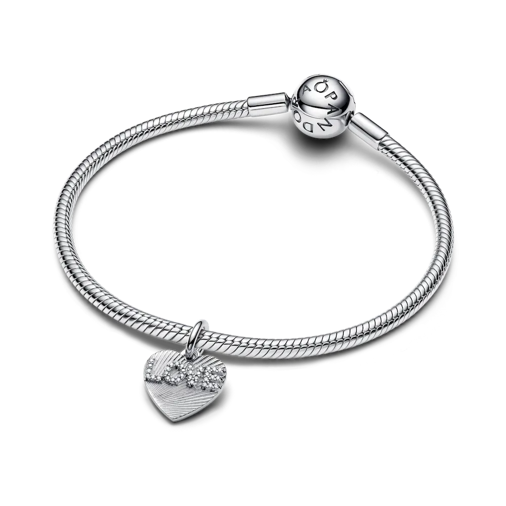 Celebrate love this holiday season with the BE LOVE Engravable Love Heart Charm Bracelet Set. This elegant set includes a sterling silver bracelet paired with a stunning heart-shaped dangle charm. The charm features
