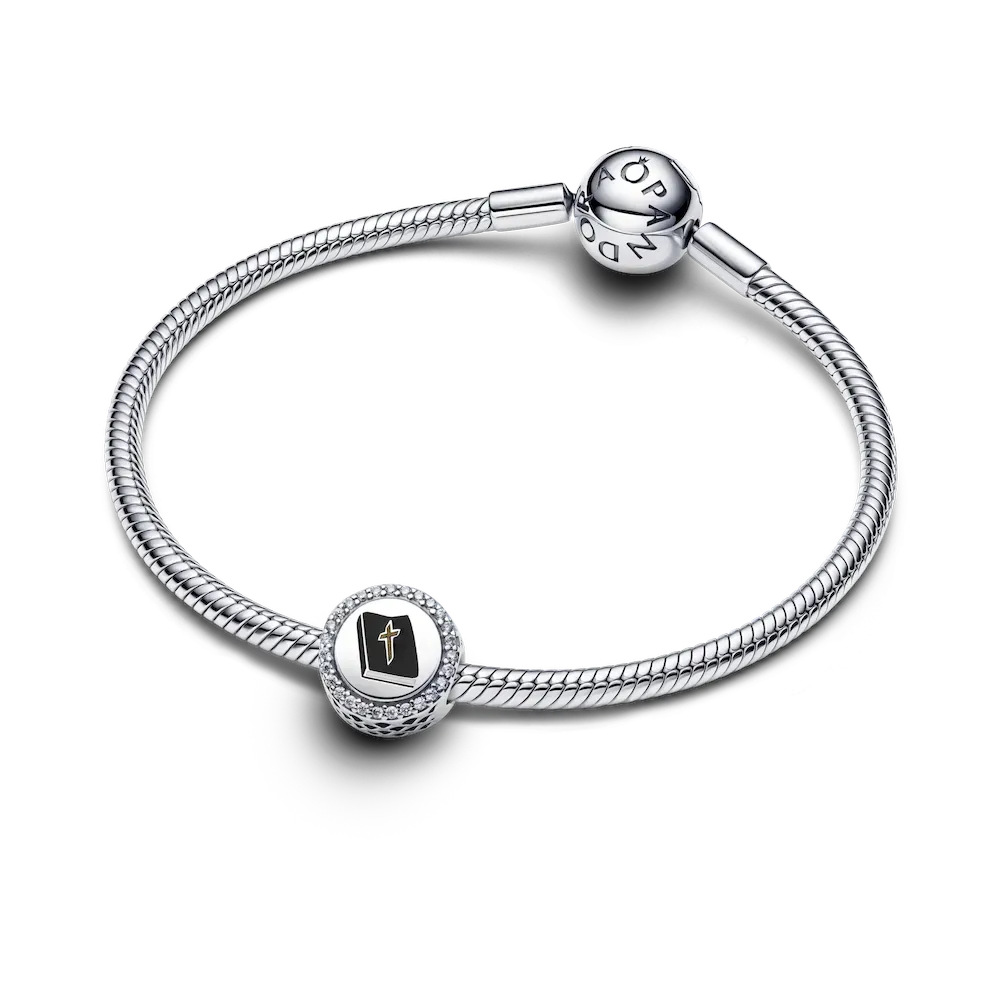 Keep your faith close to your heart with this meaningful charm, featuring an enamelled Bible on one side and the words