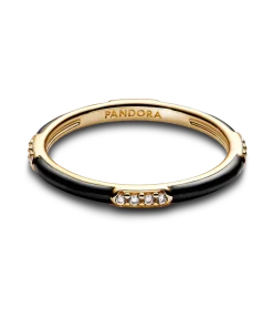 Crafted from a 14k gold-plated unique metal blend, this statement ring features 16 bead-set round brilliant-cut cubic zirconia, set against sleek black enamel. The design showcases alternating bands of sparkling stones and enamel, which creates an eye-catching contrast. Inspired by strength and resilience, this ring is perfect for expressing your individuality.