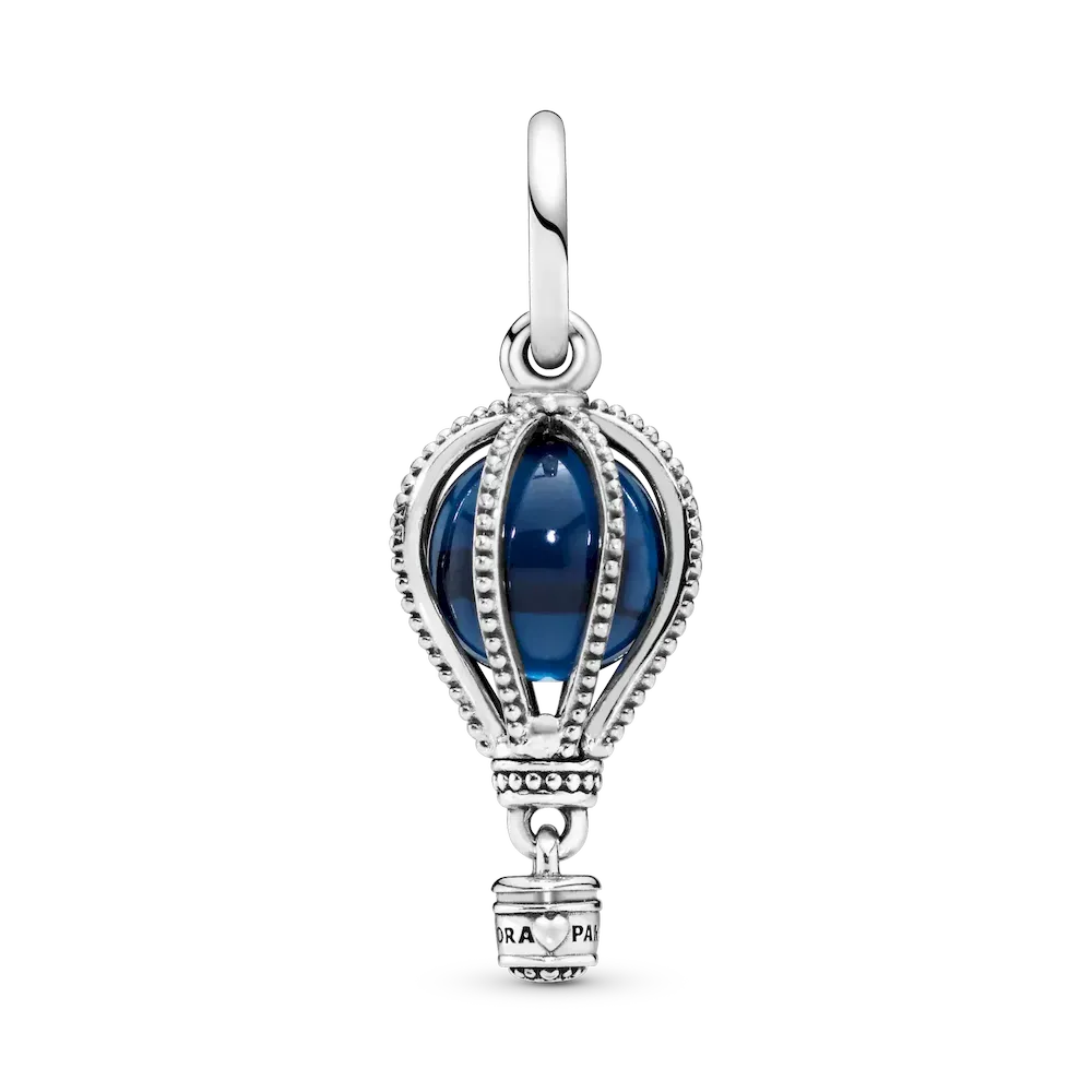 Wear the sterling silver hot air balloon charm as a symbol of your travel story or dreams of faraway places. The charm features a blue crystal balloon within beaded tethers and a dangling basket detailed with the Pandora logo and hearts. Wear it on a necklace, alone or with other favorite dangle charms or add it to a travel-inspired bracelet styling as a reminder of where you’ve been and where you’re headed.