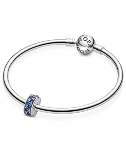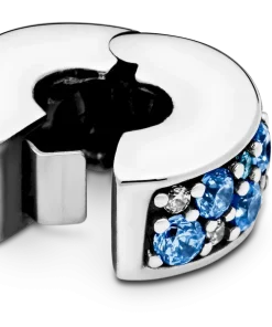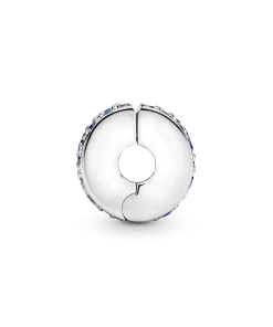 Bring beautiful blue tones to your look with this sterling silver clip charm. Tonal blue crystals and cubic zirconia add a touch of bold color to your charm collection. The hand-finished charm can be styled on your favorite Pandora Moments bracelets and bangles, to create a tonal look or simply add a pop of color. It’s fitted with a hidden silicone grip, so it stays exactly where you want it to when you wear it. This clip charm features a silicone grip, does not fit onto threads (two raised charm dividers.) This charm can be styled anywhere else on the bracelet.