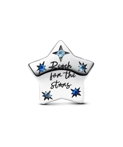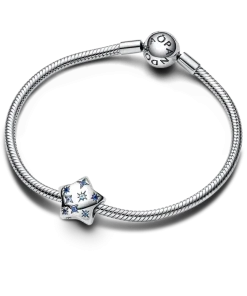 Reach for the stars with the Bold Sparkling Star Charm. This sterling silver charm takes the form of a star with softly rounded edges. The five-pointed star charm is set with man-made crystals in two different shades of blue, and each round stone is set in different star shapes. The puffy shape of this star-inspired charm brings an extra dimension of light and dreaminess to any bracelet or chain. Make a style statement by wearing it on its own, or add a sprinkle of stardust to your favorite charms.