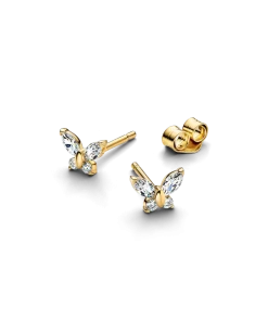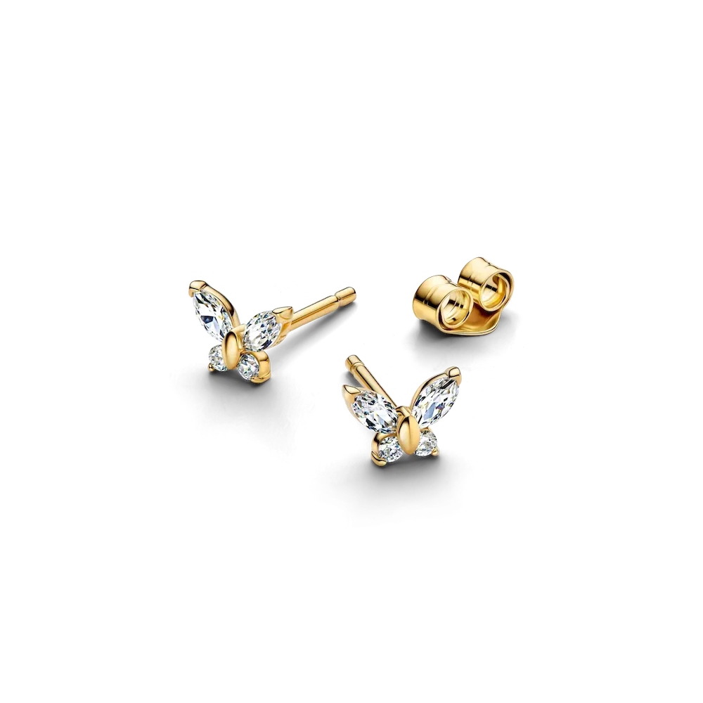Celebrate the beauty of transformation with our butterfly stud earrings. Set with clear cubic zirconia and crafted in 14k gold-plating, this is your sign to let your style take flight.