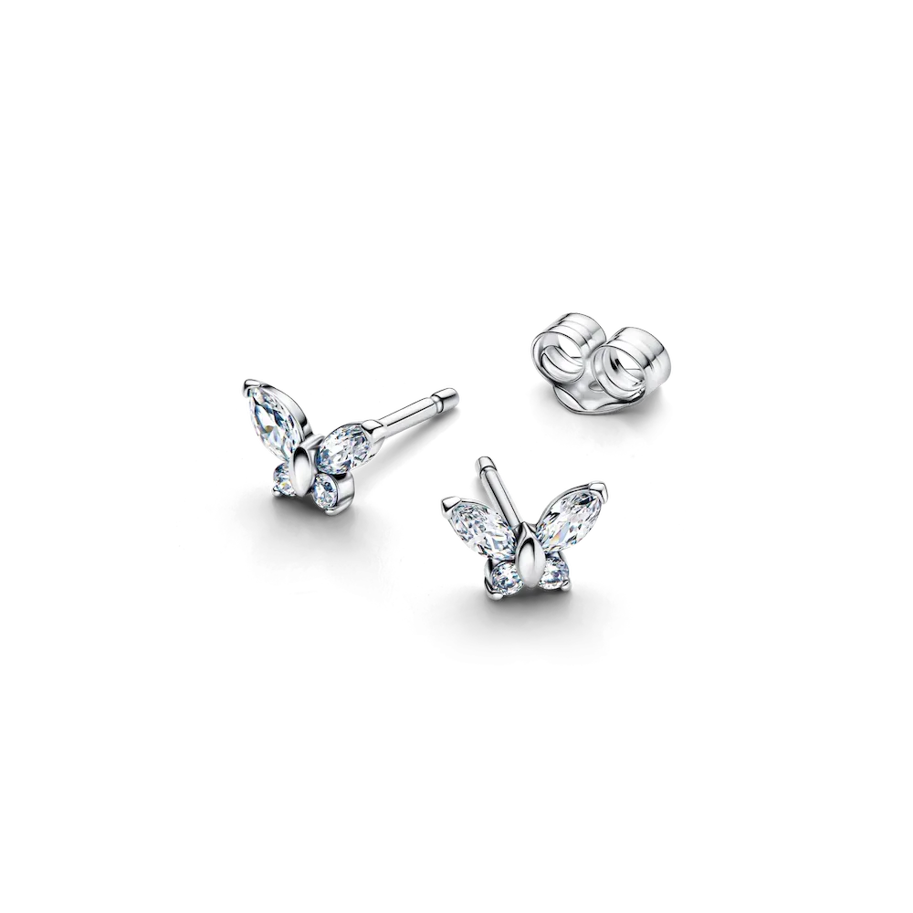 Capture the beauty of transformation with our butterfly stud earrings. Set with clear cubic zirconia and crafted in sterling silver, this is your sign to let your style take flight.
