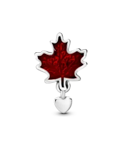 Perfect for showing your love of the Great White North – whether you’re a proud Canadian, an enamored tourist or simply a fan of maple syrup – this maple leaf charm in sterling silver is detailed with red enamel and a heart-shaped dangle engraved with the word