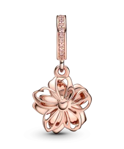 Celebrate the first signs of spring with our 14k rose gold-plated Cherry Blossom Dangle Charm. Featuring hand-applied sea pink and white enamel and accented by sparkling pink cubic zirconia, the petals on our cherry blossom rotate slightly, as if they were being blown in the breeze. A pavé-covered bail is the finishing touch on this must-have floral charm. Style it with other 14k rose gold-plated jewelry for a warm spring look.