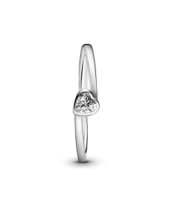 Make your loved one feel special with the Clear Tilted Heart Solitaire Ring. Hand-finished in sterling silver, this design is inspired by the story of Romeo & Juliet. Featuring a thin polished band, the ring includes a titled heart-shaped stone. This style can be stacked with other solitaire rings to create an asymmetric pattern, making it the ideal gift for Valentine’s Day.