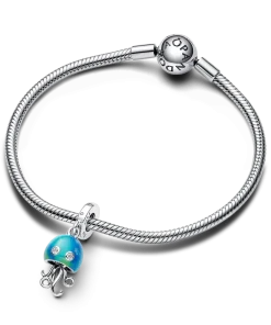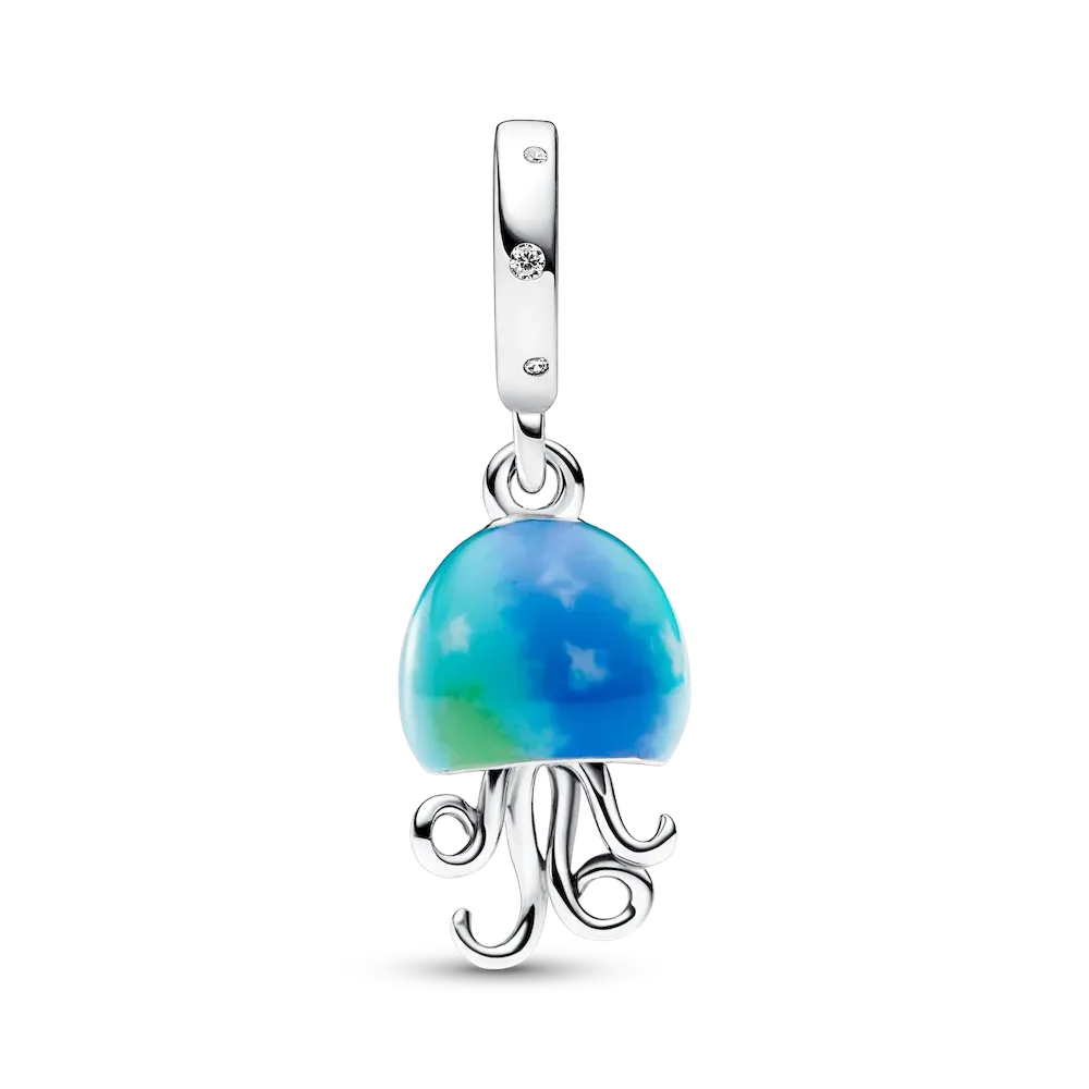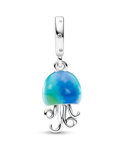 Channel the wisdom of the oceans with the Color-changing Jellyfish Dangle Charm. This hand-finished sterling silver charm features movable sterling silver tentacles, clear cubic zirconia stones as eyes and special enamel in blue tones that changes color in high or low temperatures. In nature, the jellyfish goes with the flow and is always moving forward – add it to your favorite charm styling as a reminder to embrace change and trust your inner self.