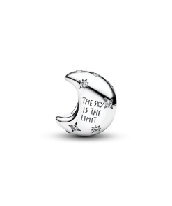 Aim high with the Crescent Moon Charm. Crafted in sterling silver and featuring flush-set starburst stones, it’s engraved with ‘THE SKY IS THE LIMIT’ — a reminder to dream big and reach beyond.