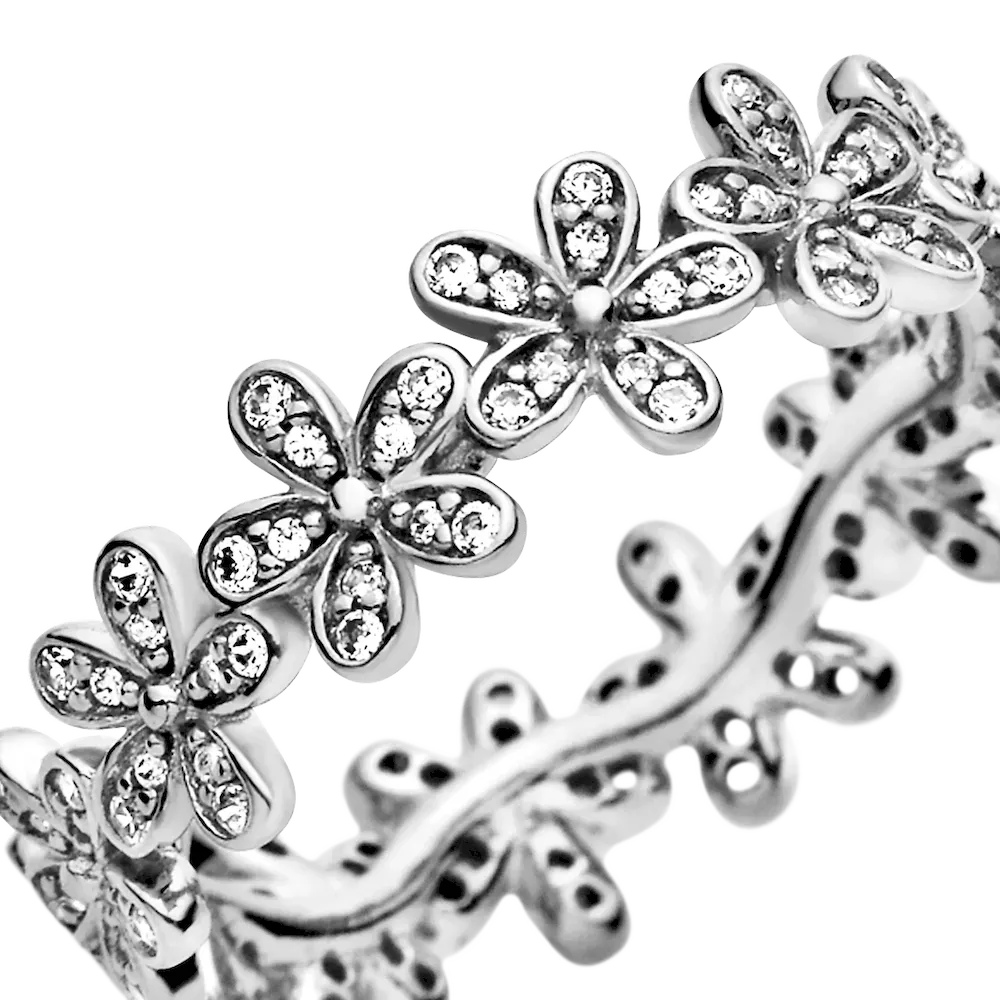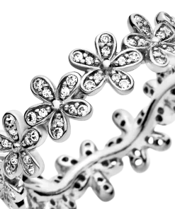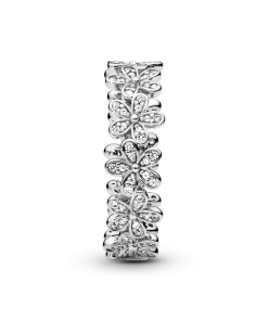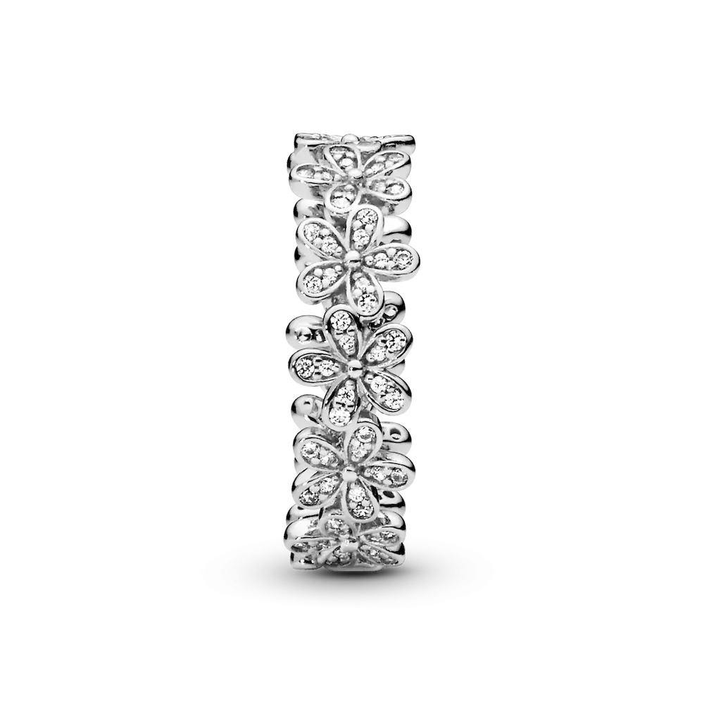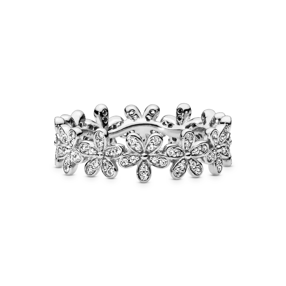Wrap your finger in flowers with this dazzling Pandora daisy ring crafted in sterling silver. Evoking feelings of joy and happiness, the delicate chain of daisies is adorned with shimmering cubic zirconia stones that catch the light. Wear it solo for everyday elegance, or with the Pandora Daisy Earrings and matching necklace for a fabulous floral look.
