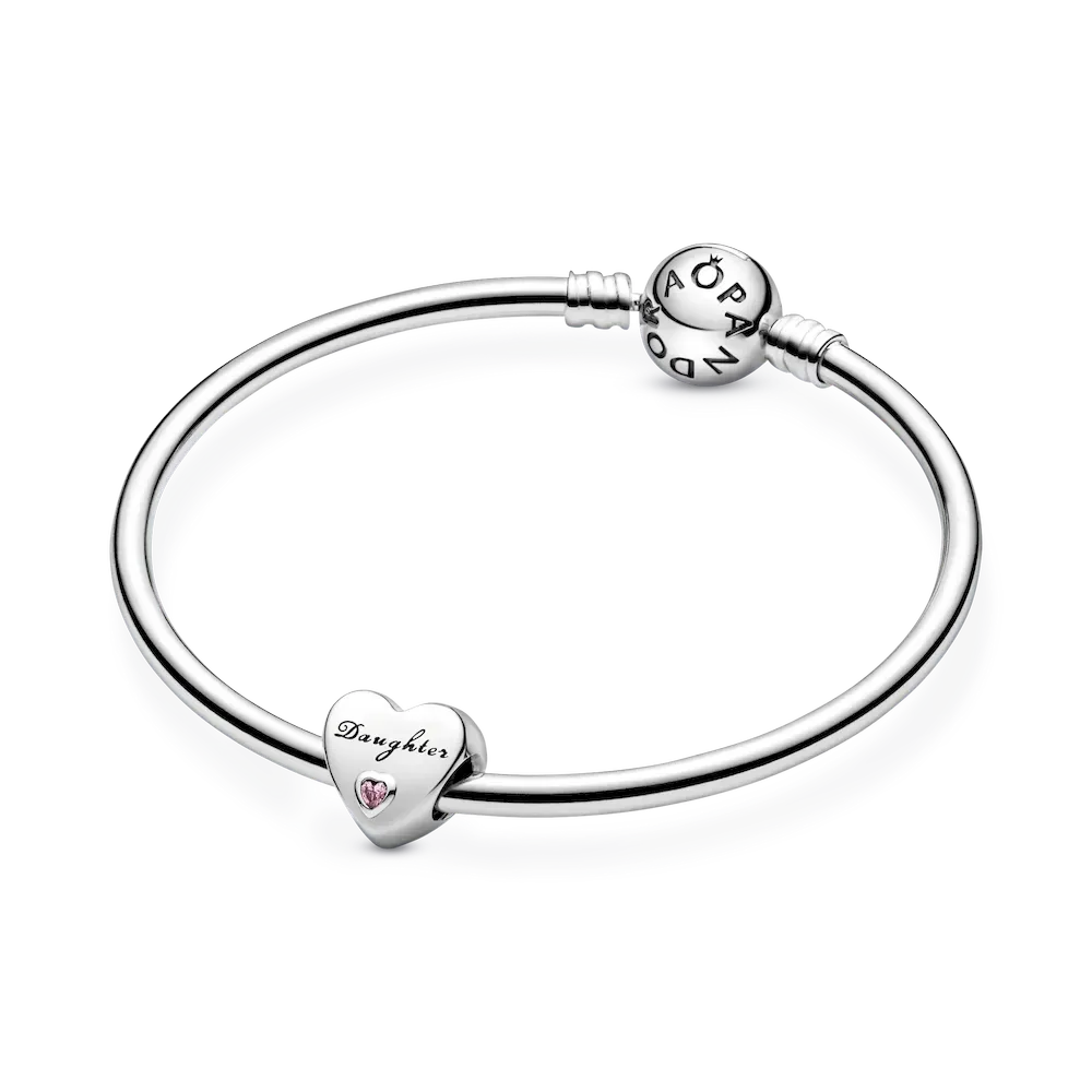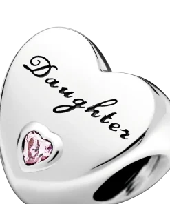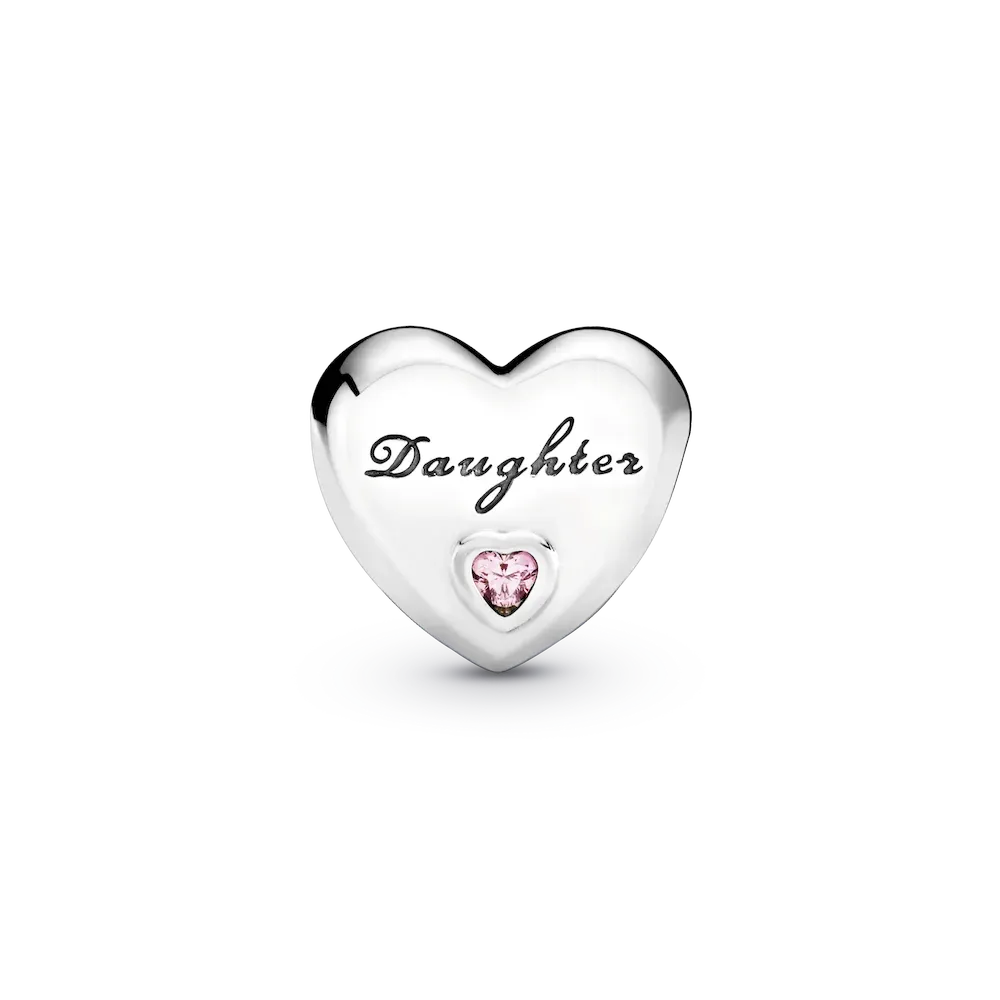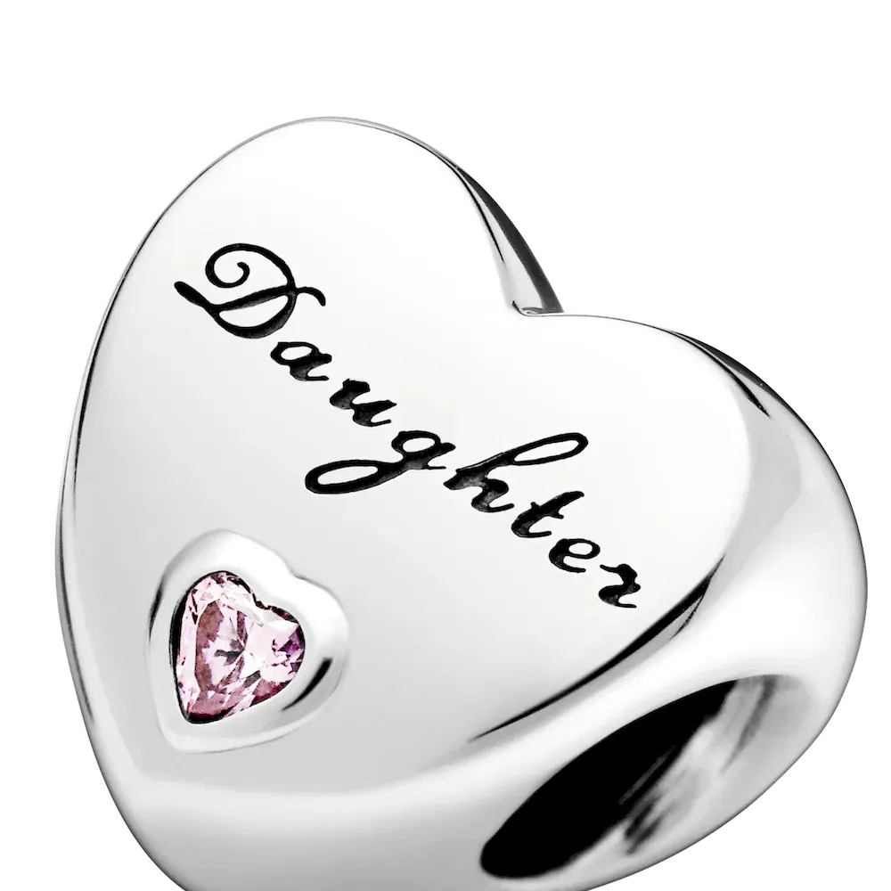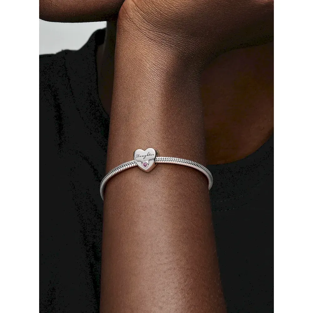 Pandora Moments charms are made for you to express the things you love – something, somewhere or someone. Made to celebrate the bond between parents and daughters, our sterling silver family charm is shaped as a heart. Polished to a high shine, the simple yet meaningful style is trimmed with heart-shaped pink stones and the engraving