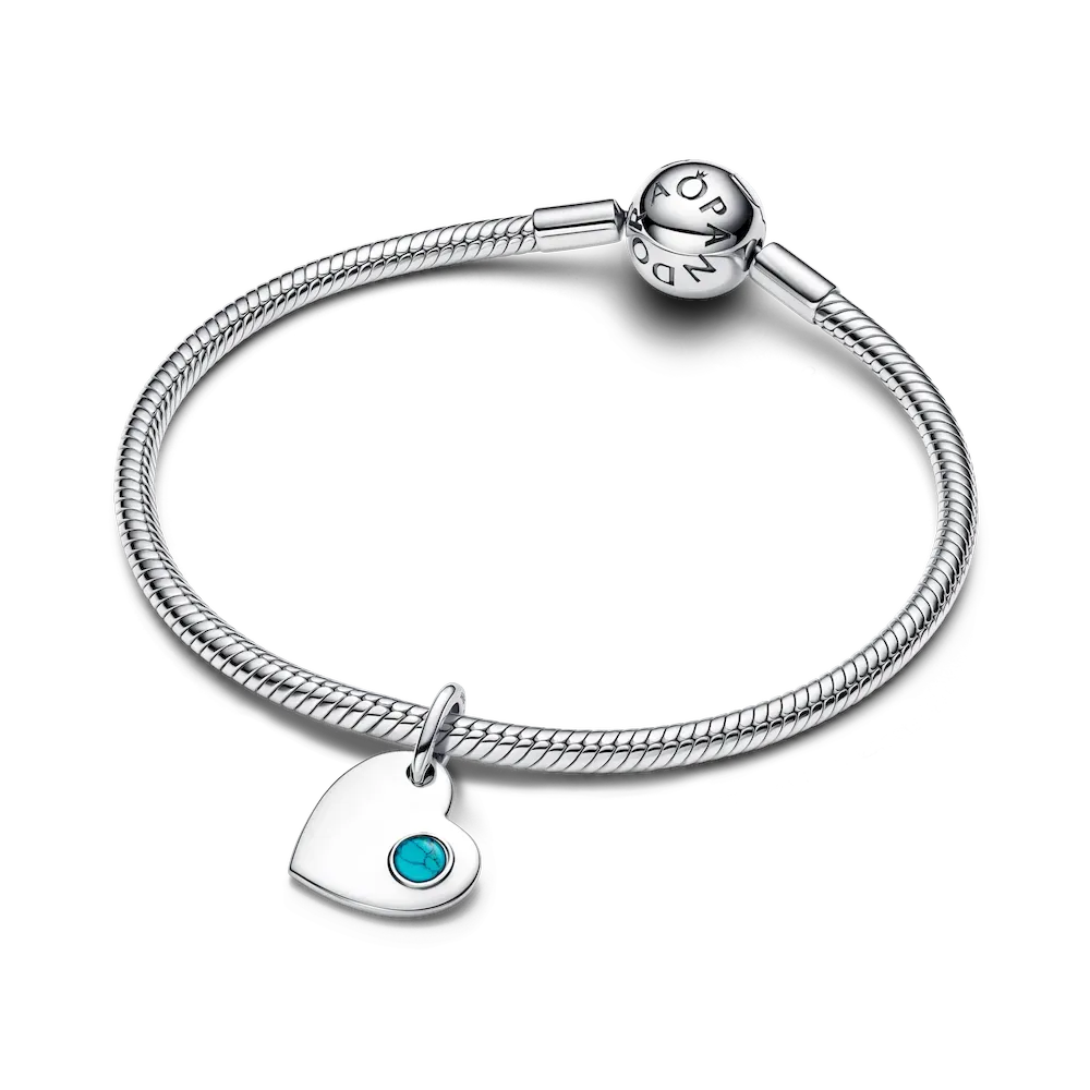 December babies, wear your birthstone color close to your heart. This sterling silver set includes a necklace and a dangle heart charm set with a turquoise-inspired stone.