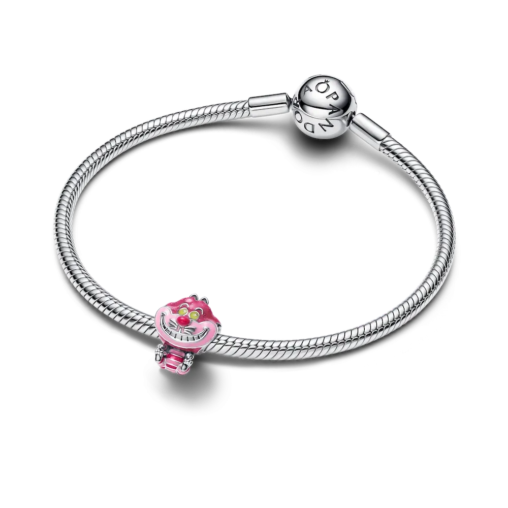 Inspired by Disney’s Cheshire Cat, this sterling silver charm features vibrant enamel colors, glow-in-the-dark eyes and a toothy smile. Playful details and the ©Disney logo complete the magical design.