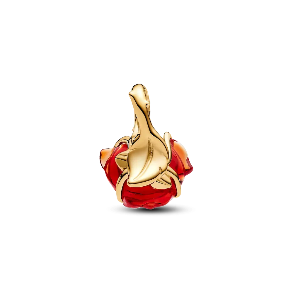 Inspired by Disney’s Beauty and the Beast, this 14k gold-plated charm features a red Murano glass rose with a thorny stem bail. A symbol of true beauty, love and kindness that breaks all curses.
