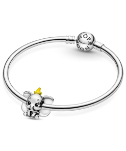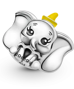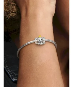 Fly high with the Disney Dumbo Charm. Hand-finished in sterling silver, this charm was designed in collaboration with Disney’s toy designers. Disney’s Dumbo features an enlarged head and smaller body for an adorable finish. The character has big polished ears, engraved toes and black hand-applied enamel eyes. Dumbo’s wearing a ruffled collar and his iconic hat covered in hand-applied yellow enamel with sterling silver detailing. Wear this magical design alongside other Disney x Pandora styles for a fun-filled look.
