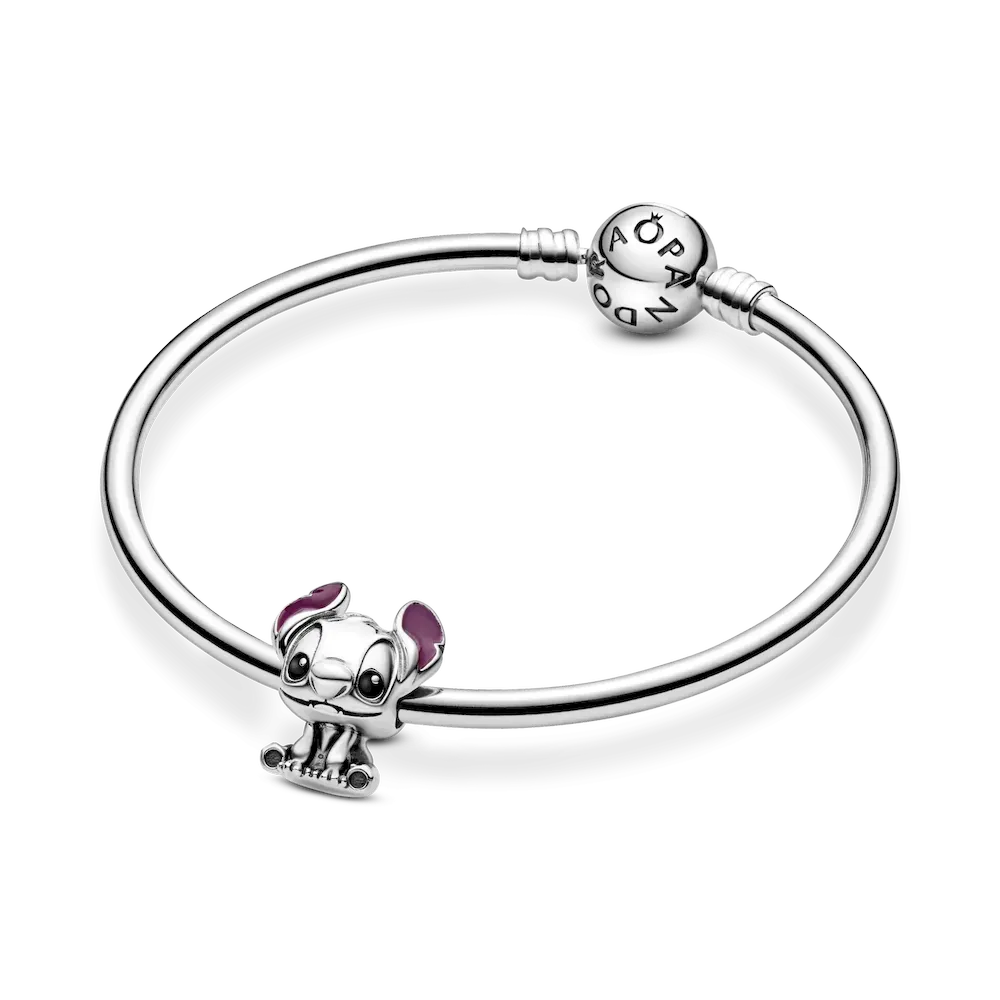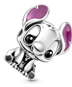 Celebrate the love for your ‘ohana’ with this hand-finished Disney Stitch charm from the Disney x Pandora Favorites series. Created in collaboration with Disney’s in-house toy design team, the creature’s design is centered on his enlarged head and smaller body that highlights his loveable expression. The Stitch sterling silver charm features hand-applied purple enamel that highlights the contour of his ears and black enamel on his eyes. Wear it with your favorite Disney x Pandora charms to create your own style adventure.