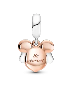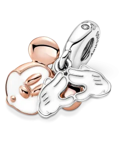 This Disney Mickey Mouse Double Dangle Charm is the perfect reminder to always be yourself and trust in who you are. Hand-finished in sterling silver and 14k rose gold plating, this charm features Disney’s Mickey Mouse peeking through his hands, with two separate elements of the charm that allow him to lift his hands away from his eyes and come out from hiding. Decorated with white enamel details and an engraving on the back that reads