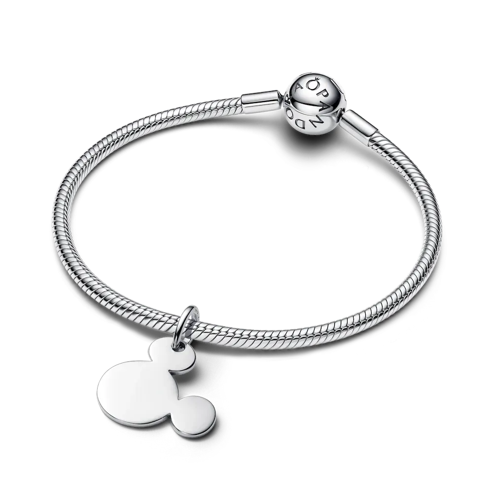 Introducing the first-ever engravable Disney x Pandora pendant, featuring Mickey Mouse’s iconic silhouette in sterling silver.
