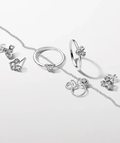 Step into the magical world of Disney with our sterling silver Mickey Mouse & Minnie Mouse Sparkling Stud Earrings. The iconic silhouettes come to life with prong-set oval and round brilliant-cut cubic zirconia, creating a dazzling tribute to these beloved characters. The intricate detailing, from Mickey’s oval ears to Minnie’s bow, captures the essence of Disney magic. Engraved with Pandora and ©Disney logos, these earrings are not just accessories; they’re a wearable celebration of the enchanting love story between Mickey and Minnie.