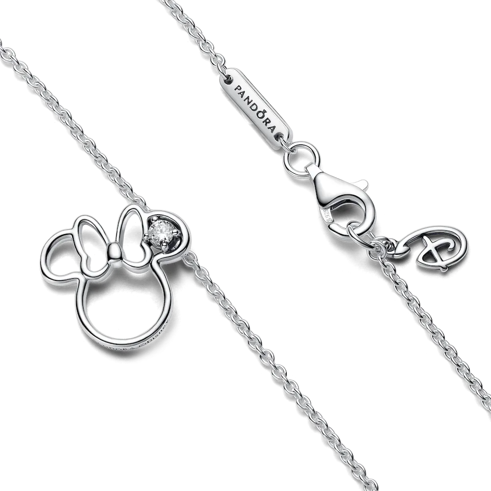 Capture the timeless charm of one of the most iconic screen characters with our Disney Minnie Mouse Silhouette Collier Necklace. Crafted in sterling silver, the pendant features Minnie’s iconic head and bow, accented by a sparkling cubic zirconia. The adjustable 45cm chain allows for versatile styling, while the unique details, like the dangling Disney ‘D’, add a touch of fun. It’s a heartfelt homage to the beloved character, combining the magic of Disney with the craftsmanship of sterling silver.