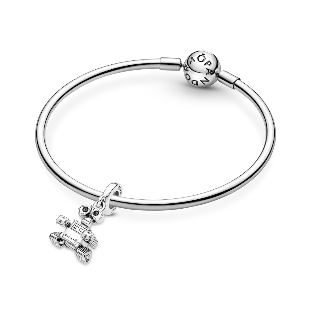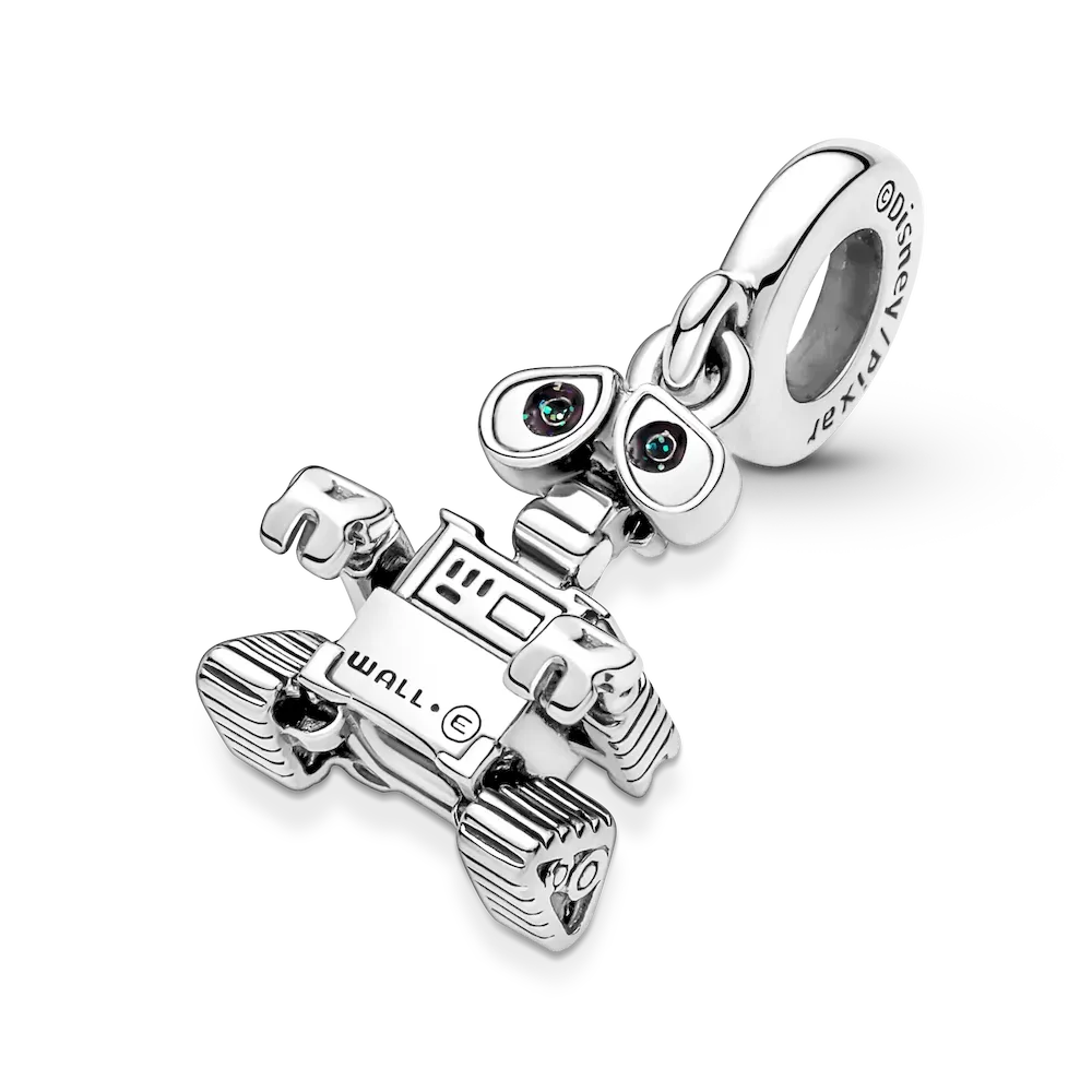 Spread the love for Planet Earth and celebrate friendship and connection with Pixar’s Wall-E. This big-hearted robot from Disney and Pixar’s Wall-E is depicted in sterling silver with realistic robot detailing. A combination of black, red and glittery enamel on his tilted eyes creates depth to capture his kind and curious expression, giving the impression of stars reflected in his eyes.