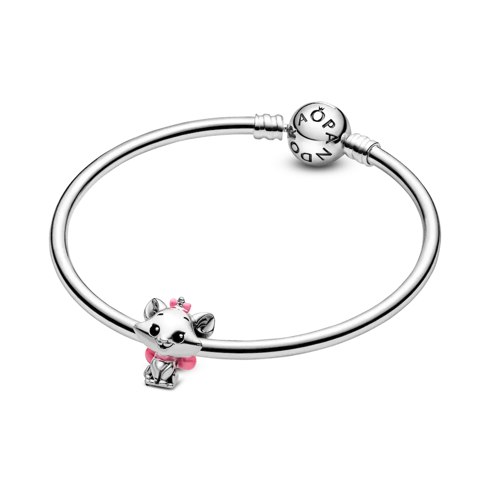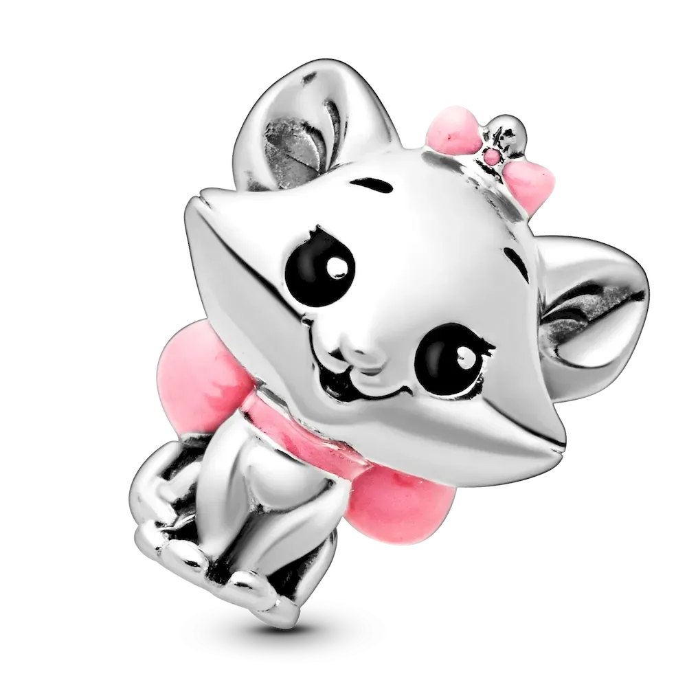 Re-live the memories of watching iconic Disney’s Aristocats with this hand-finished Disney Marie charm from the Disney x Pandora Favorites series. Created in collaboration with Disney’s in-house toy design team, the cat’s design is centered on her bow details and long lashes that highlight her ladylike expression. The Marie sterling silver charm features hand-applied enamel details as well as an enlarged head and smaller body. Wear it with your favorite Disney x Pandora charms to create your own style adventure.