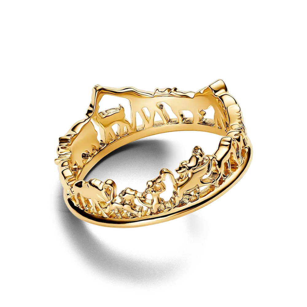 Celebrate the harmony of life with the Disney The Lion King Ring. This 14k gold-plated ring features a life cycle theme, with a row of intricately detailed animals including Disney’s Simba, Timon and Pumbaa. The perfect addition to any devoted Disney fan’s collection, this ring symbolizes the delicate balance between life and death. Be inspired by the film’s iconic characters and profound message every time you wear this ring.