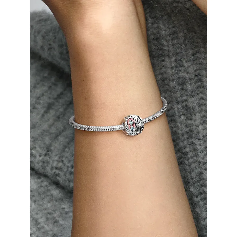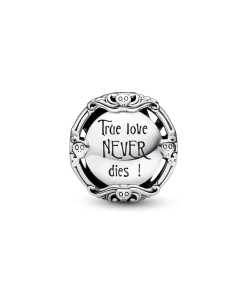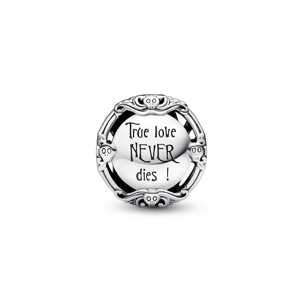 Happy Halloween! Celebrate the spookiest season of the year with a special charm inspired by Disney’s Tim Burton’s The Nightmare Before Christmas.Hand-finished in sterling silver, it features Disney’s Sally and Jack Skellington on one side and an engraving that reads “True love NEVER dies” in gothic script on the other. Add the king and queen of Halloween to your charm holder of choice and celebrate love that never dies.