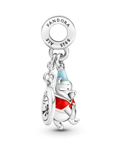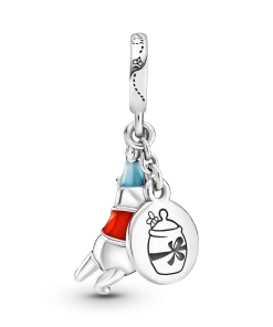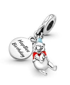 Make their special day one to remember with the Disney Winnie the Pooh Birthday Dangle Charm. Hand-finished in sterling silver, the front dangle includes a 3D version of Disney’s Winnie the Pooh wearing a hat and shirt decorated with hand-applied blue and red enamel. The back disc features the engraving “HapBee Birthday” with a honey pot on the other side. A small bee detail decorates the bail. Gift this piece to your loved one as they celebrate another year.