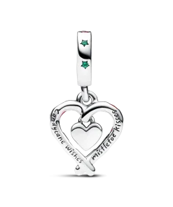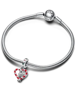 Embrace the festive spirit with the Double Candy Cane Heart Christmas Dangle Charm. Our sweet candy cane Pandora charm channels the playful traditions of this special time of year. Two candy canes form a heart with red enamel details, while an apt “Sweet heart” is engraved into the center dangling heart. Matching messages “Candy cane wishes