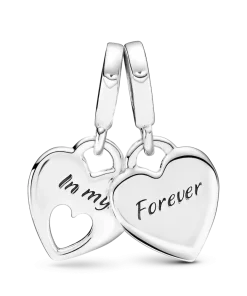 Celebrate one of life’s most special bonds with the Double Heart Split Dangle Charm. Hand-finished in sterling silver, one disc includes a cut-out heart with the engravings “In my heart” and “Mother.” On the other, there’s a hand-applied pink enamel heart with the engravings “Daughter” and “Forever.” When the discs overlap, the enamel heart fits perfectly within the cut-out shape. Give half of this charm to your loved one as a reminder of how much you mean to one other.
