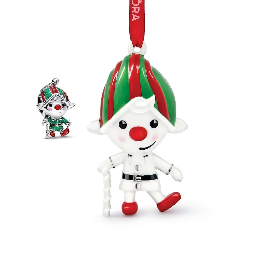 Add holiday cheer with this sterling silver elf charm and ornament set. The charm has movable limbs and glittery enamel, while the ornament features festive details. Perfect for collectors.