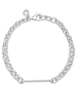 Personalize your wrist with the Engravable Bar Link Bracelet. Hand-finished in sterling silver, this bracelet features a simple polished silver bar on a chain bracelet. Both sides of the silver bar are engravable. Each bracelet can be adjusted up or down one size. Whether you engrave your initials, an important date or another message that has special meaning to you, this bracelet is the epitome of modern, chunky, customized style.