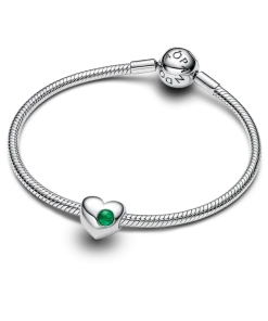 Engrave a message of love. Our sterling silver heart charm with a flush-set green man-made crystal is the perfect canvas for a personal note or meaningful memento.