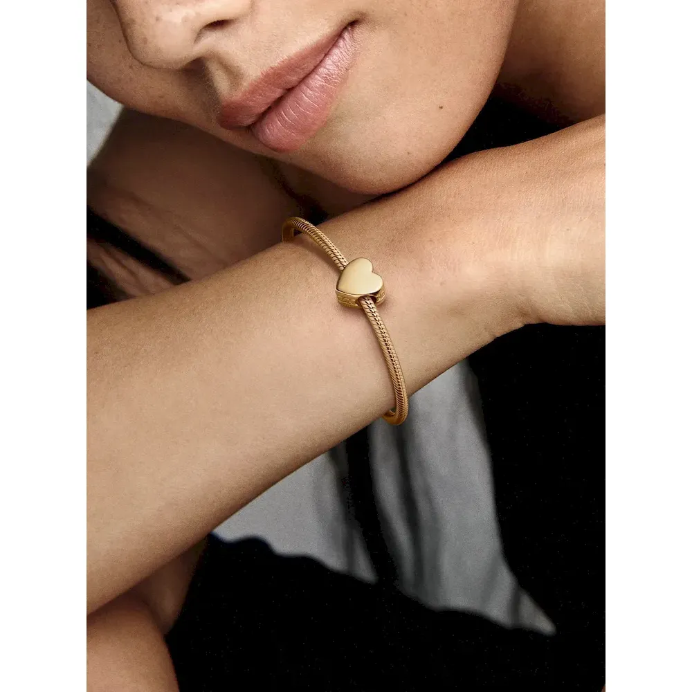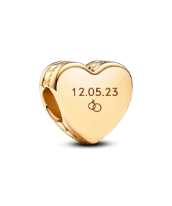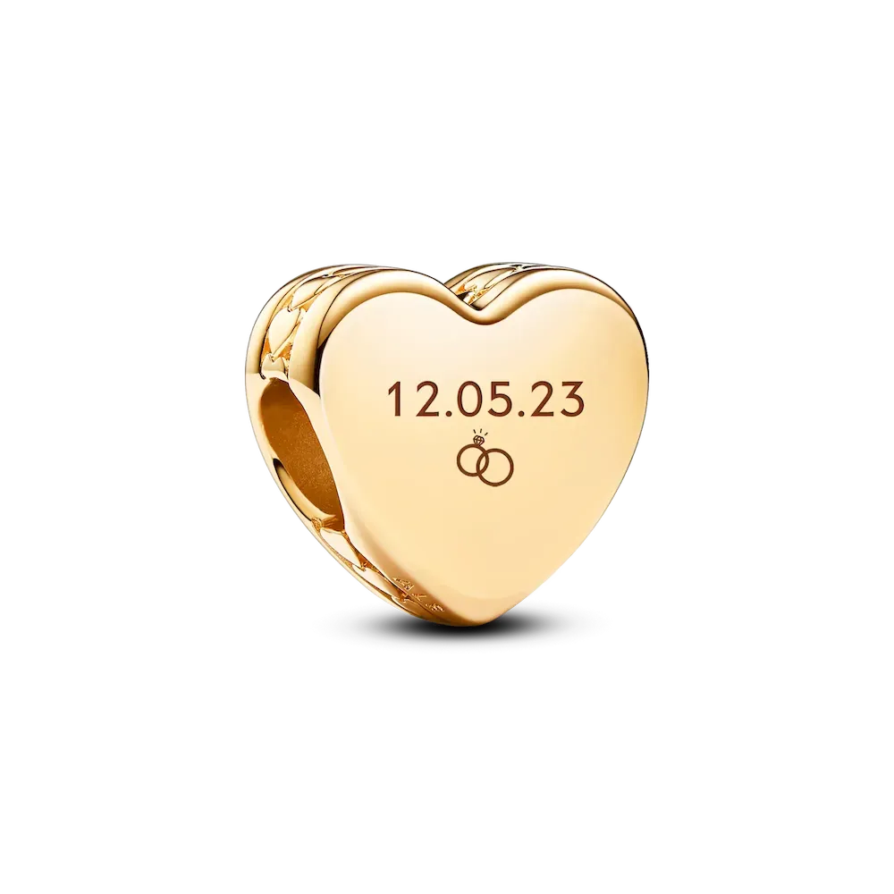 Simple, yet iconic. Keep messages of love close to your heart with our Engravable Heart Charm, hand-finished in 14k gold plating. Engravable on both sides, so you can add personal touches to a special gift for a loved one or yourself, this heart-shaped charm features a ribbon of hearts design around its edge.