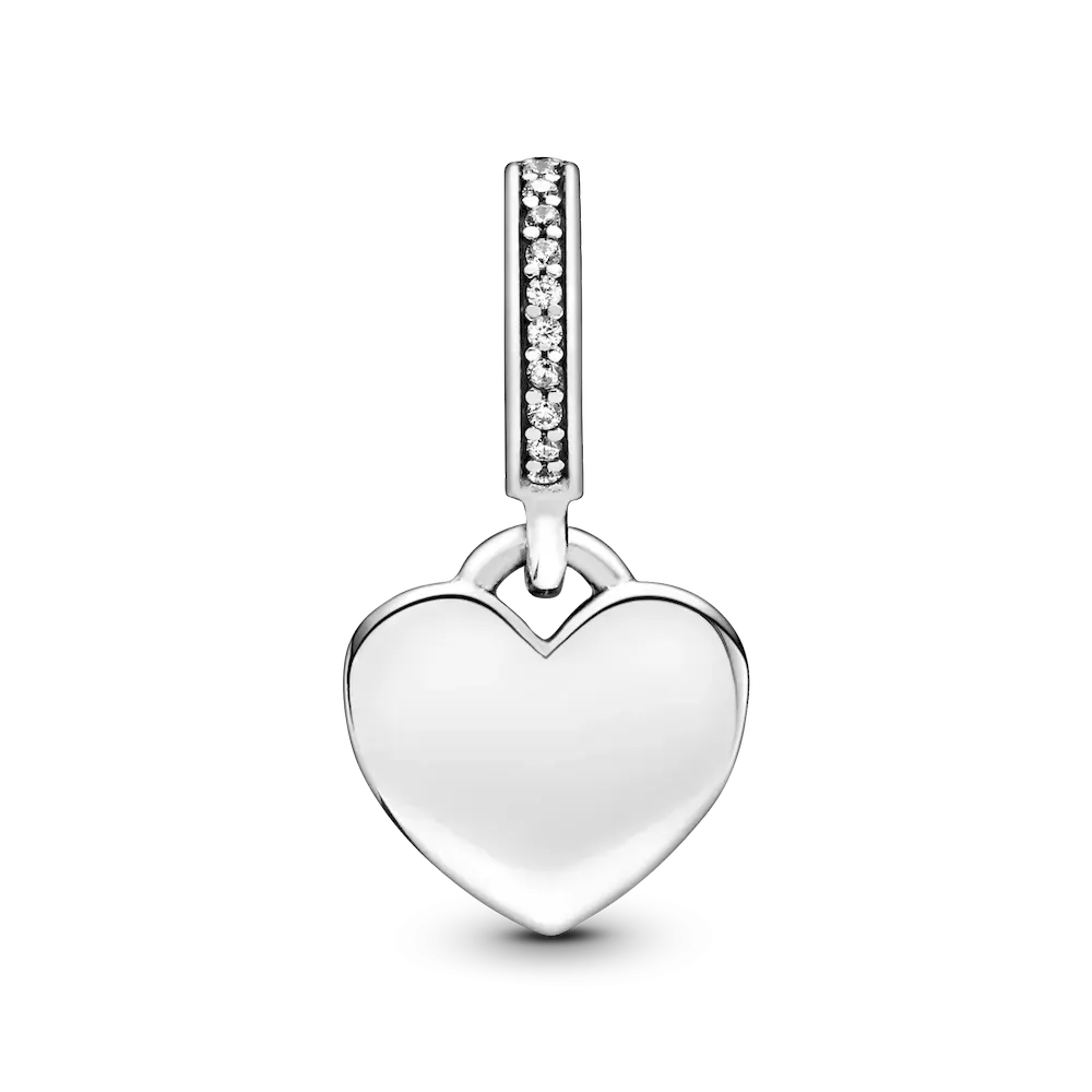 Your jewelry can now be as unique and special as you are with this Engravable Heart Tag Dangle Charm in sterling silver. This heart-shaped tag features an engravable front and back, where you can get the names of your friends, family and loves inscribed. A line of clear cubic zirconia accentuates the top and provides a touch of eye-catching sparkle. It’s easy to create your own unique style with a piece that is easy to personalize – the only limit is your imagination.