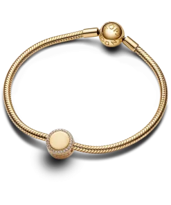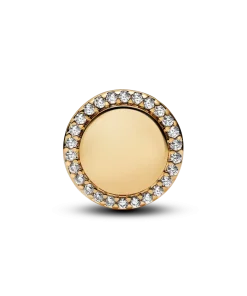 Make your mark with our engravable 14k gold-plated button charm. Surrounded by sparkling pavé and outlined with cut-out hearts, this circular charm can be personalized with an engraving on both sides. It’s the perfect meaningful gift for everyone on your list – including yourself.