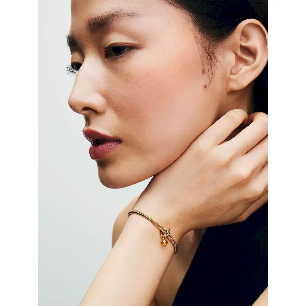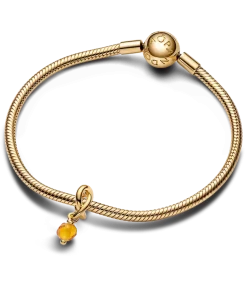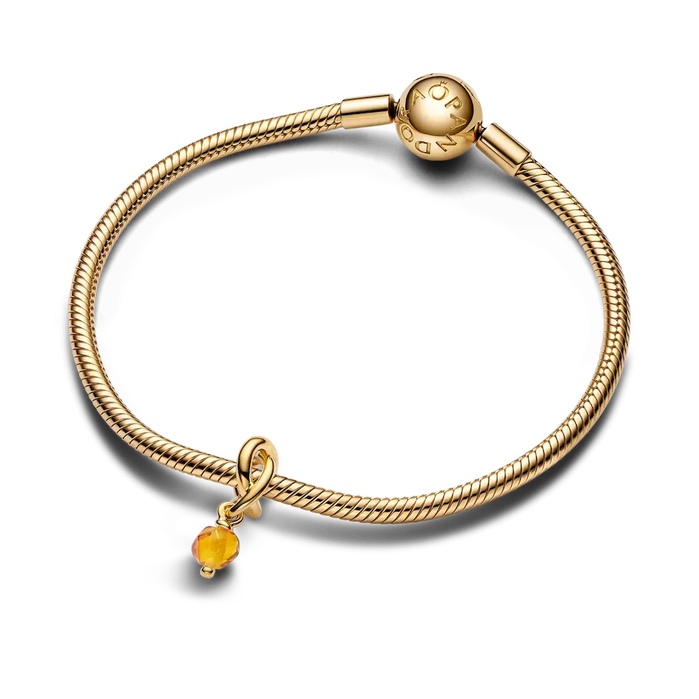 Wear a symbol of forever, that’s personal to you. This 14k gold-plated dangle charm is made up of a triple knotted circle that intertwines to resemble an infinity sign. The twist carries a faceted honey-colored man-made crystal, which dangles from the charm. Wear yours to add a drop of color to your carrier, or gift it to the one you want in your life forever.